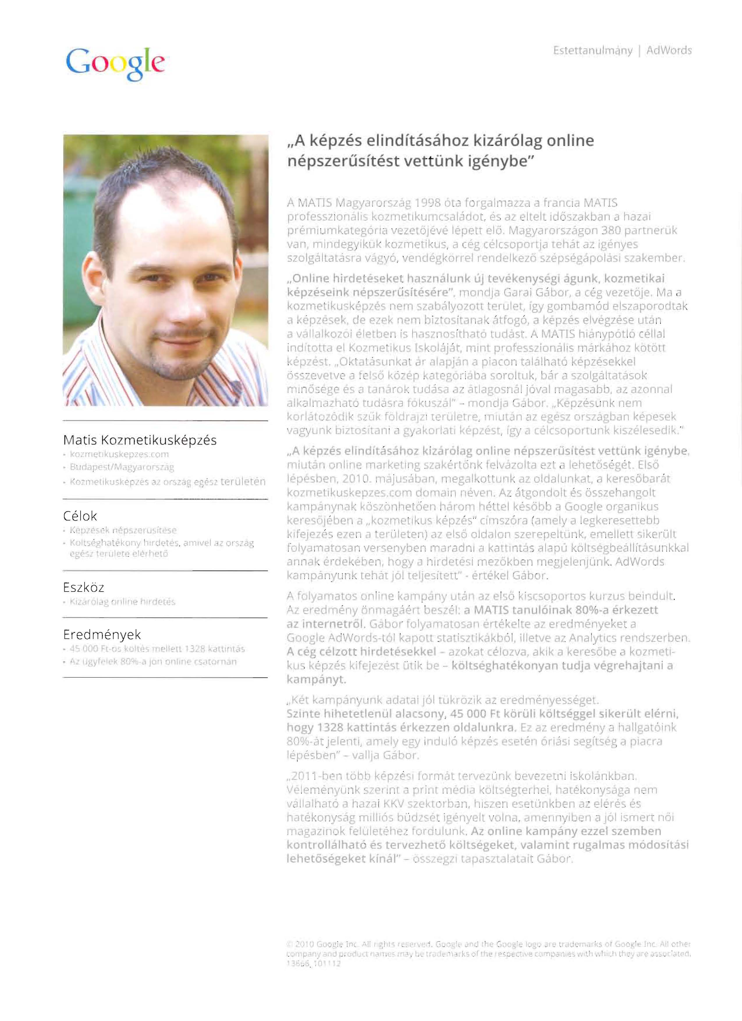 Google Adwords Sikerünk – Esettanulmány by Google március 24, 2011 Megosztás: Kattintson ide, hogy megoszthassa a Pinterest-en(Új ablakban nyílik meg) Pinterest Kattintson ide, hogy megoszthassa a Tumblr-en(Új ablakban nyílik meg) Tumblr Megosztom a LinkedInen(Új ablakban nyílik meg) Linkedin Click to share on X(Új ablakban nyílik meg) X (tovább...) Ajánlás egy barátnak email-ben(Új ablakban nyílik meg) E-mail Kattints ide a nyomtatáshoz(Új ablakban nyílik meg) Nyomtatás Facebookon való megosztáshoz kattintás ide.(Új ablakban nyílik meg) Facebook Tetszik Betöltés... Közzétéve: szinteonline Szinte Romulus Loránd SEO szakértő, Online marketing expert, google individual qualified Budapest, Hungary szinteonline összes bejegyzése
