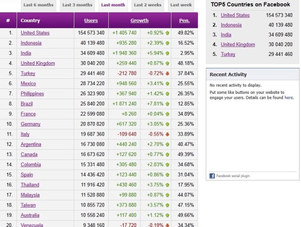 Facebook reaches over 2 million active Canadian users and 1 million active UK users