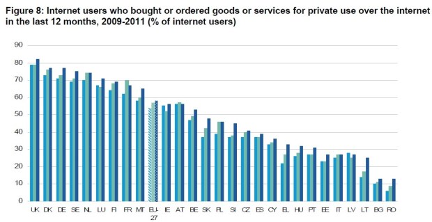 A behálózott háztartások számát tekintve Holllandia vezet 94 százalékkal, aztán Svédország és Luxemburg (91%), majd Dánia (90%) következik. Ebből a szempontból Bulgária áll a legrosszabbul, ahol a háztartásoknak mindössze 45 százaléka csatlakozik a nethez, de a 47 százalékos Romániában sem sokkal jobb a helyzet. A magyar háztartások 65 százalékában van internet, ami jelentős javulást mutat – 2007-ben 38, 2009-ben 55 százalékos volt az arány.