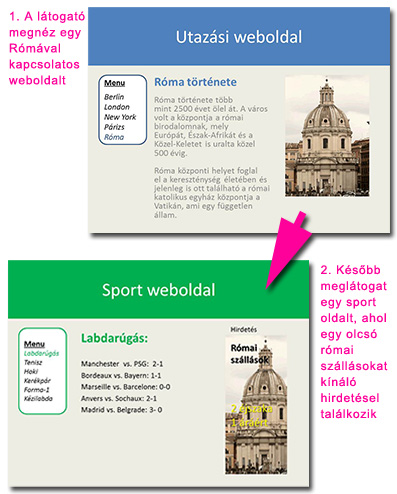 Képzelje el, hogy egy római nyaralást tervez. Elolvas számos Rómáról szóló cikket, lehetséges szállások, turista látványosságok webhelyeit keresi fel. Egy későbbi webezés alkalmával, amikor a kedvenc focicsapatának eredményeit nézi, megjelenhetnek hirdetések római szállás és egyéb római nyaraláshoz köthető ajánlatokkal. Ezeket a hirdetéseket személyre szabottan önnek mutatják a hirdetők, hiszen érdeklődést mutatott Róma iránt. Ez a technológia segít kihasználni az internet nyújtotta technikai lehetőségeket – segít csökkenteni a felhasználó számára nem releváns reklámtartalom megjelenítését.