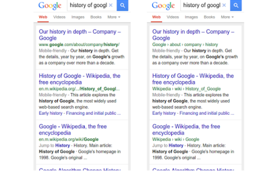 Itt a hivatalos Google infó angol nyelven http://googlewebmastercentral.blogspot.hu/2015/04/better-presentation-of-urls-in-search.html