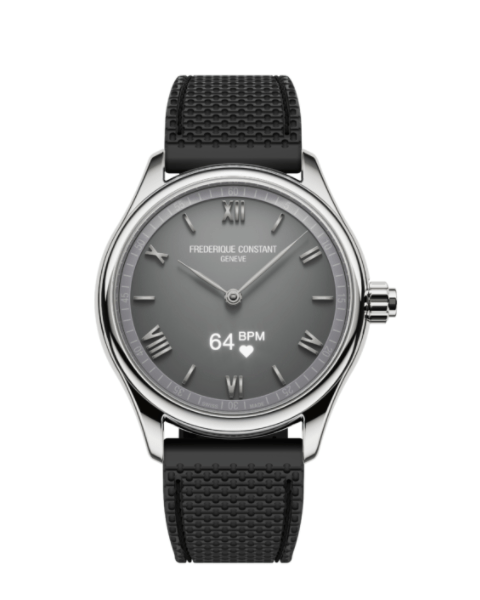 Első ránézésre szépen megmunkált klasszikus férfi órának tűnik, méltó folytatásaként a Frederique Constant manufaktúra hagyományainak. A jobb oldalon elhelyezkedő korona tetejére ültetett nyomógomb azonban egy számlap alatti kijelzőt aktivál.