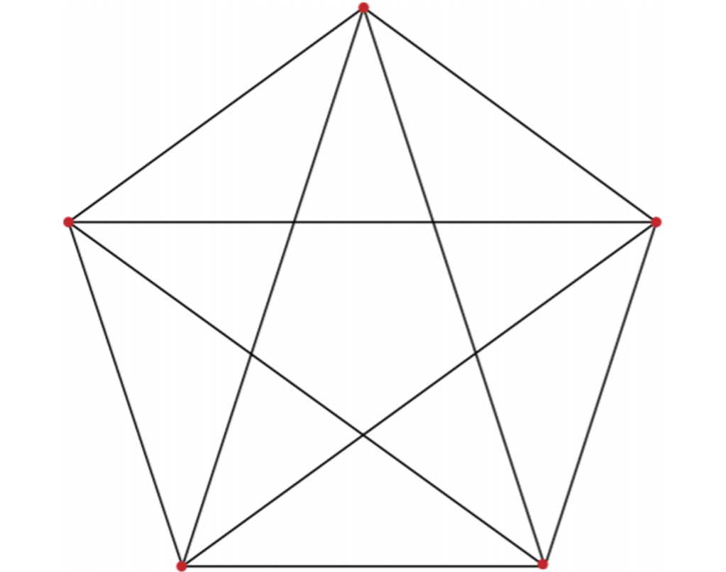 Képzelje el így: A Google néhány nagyon okos matematikust alkalmaz, akik értenek a gráfelmélethez. Tehát megnyugodhatunk, hogy a Google algoritmusai kifinomult munkát végeznek a természetellenes linkelési struktúrák felderítésében, mint például a 7-47. Ábrán, amelyet gráfelméletben klikknek neveznek. Figyeljük meg, hogy öt csomópont (vagy csúcs) van, amelyek mindegyike összekapcsolódik mind a négy szomszédos csomópontjával. Soha nem hagynak ki egy linket. Olyan tökéletesnek tűnik az egész. A weben természetesen előforduló linkhálózatok márpedig nem tökéletesek. Ha tökéletesnek tűnnek, akkor azokat már megtervezték. A Google gyanút fog a természetellenesnek tűnő hálózatokkal szemben.