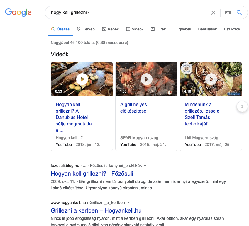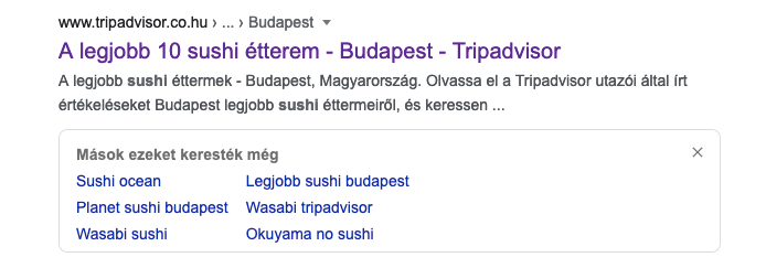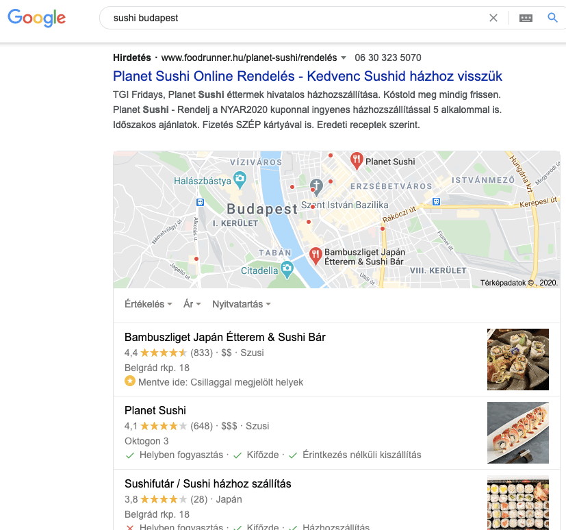 A helyi lekérdezések („sushi Budapest”) és akár olyan lekérdezések esetében is, amelyeket a Google a helyzettől függően helyinek tekinthet, a felhasználók a „Google térkép” -et jelenítik meg.