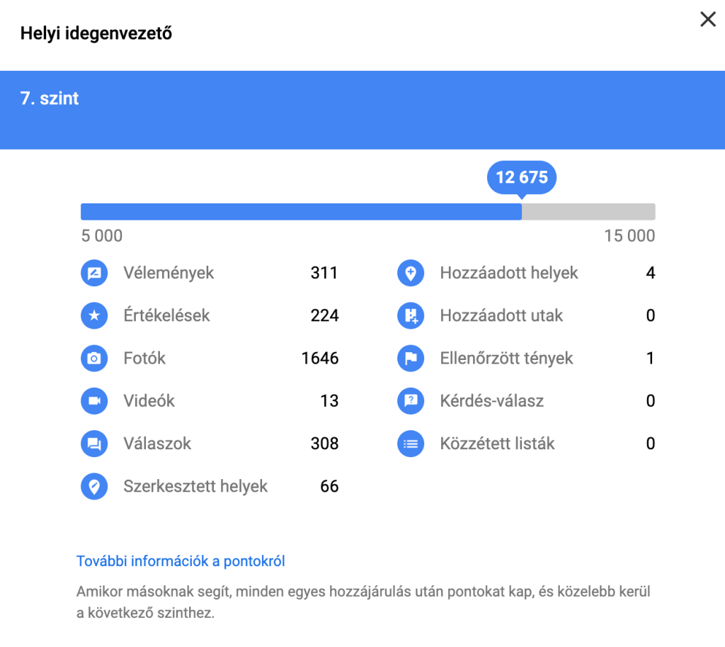 Szerezzen pontokat a hozzájárulásaiért cserébe. A pontgyűjtés révén új szintre léphet a programban. A magasabb szinteken különleges jutalmakban lehet része, és előzetes hozzáférést kaphat a Google új funkcióihoz.