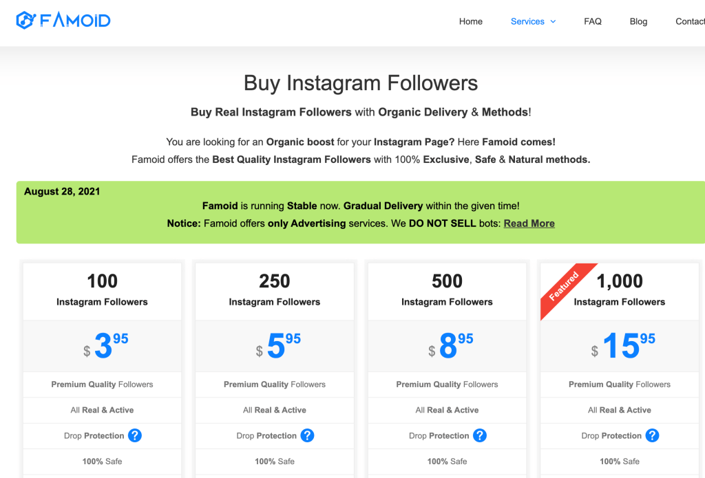 Több okból (beleértve azt a tényt, hogy ez a cikk a múlt héten esedékes úgy döntöttem, hogy egyszerre megvásárolom az enyémet. A Famoid 1000 követőt ad el 15,95 dollárért. (Milyen pénznemben? Nem mondja ki! Azt hiszem, szórakoztató meglepetés lesz a hitelkártyám számláján!)