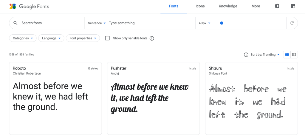 Mindegyikben böngészhet a Google Fonts oldalon.