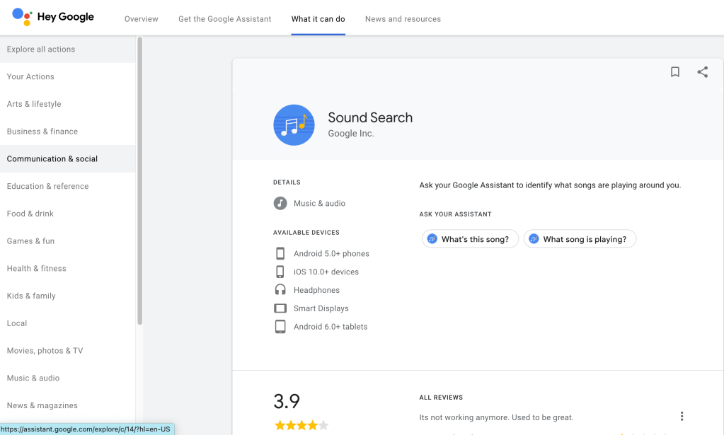 A Sound Search úgy működik, mint a Shazam – a Google Asszisztens segítségével azonosítja a hallott dalt, majd felkínálja a letöltési lehetőséget a Google Play Zene, a YouTube vagy a Spotify szolgáltatásból.