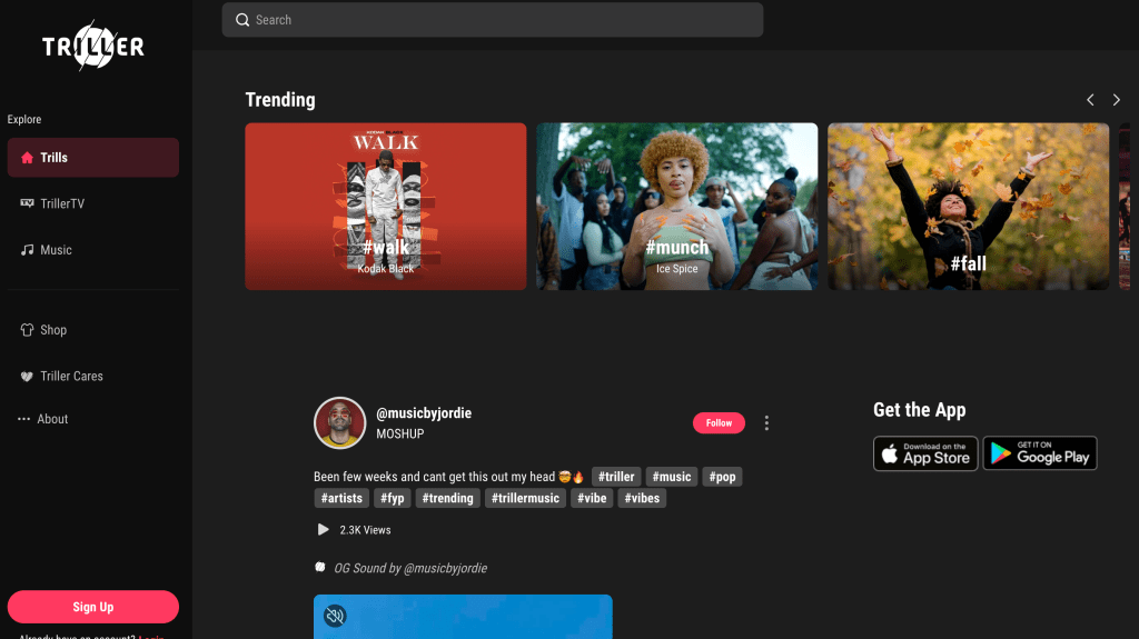 A Triller jelenleg az egyik legerősebb amerikai TikTok-versenytárs. A Triller egy szórakoztató alkalmazás alkotók, művészek és befolyásolók számára. Egy közösségi videós közösség, ahol a felhasználók megmutathatják képességeiket a rövid formátumú videóknak köszönhetően. Felhasználók milliói készítettek Triller-videókat, köztük Justin Bieber, Chance the Rapper, Rita Ora, Kevin Hart és mások.