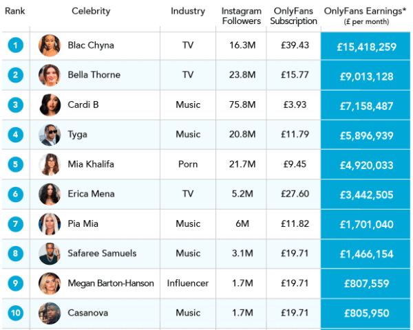 Az OnlyFans 2016-os indulása óta körülbelül 4 milliárd fontot fizetett ki alkotói bevételként, ennek ellenére az átlagos tartalomkészítő havonta körülbelül 133 fontot keres.