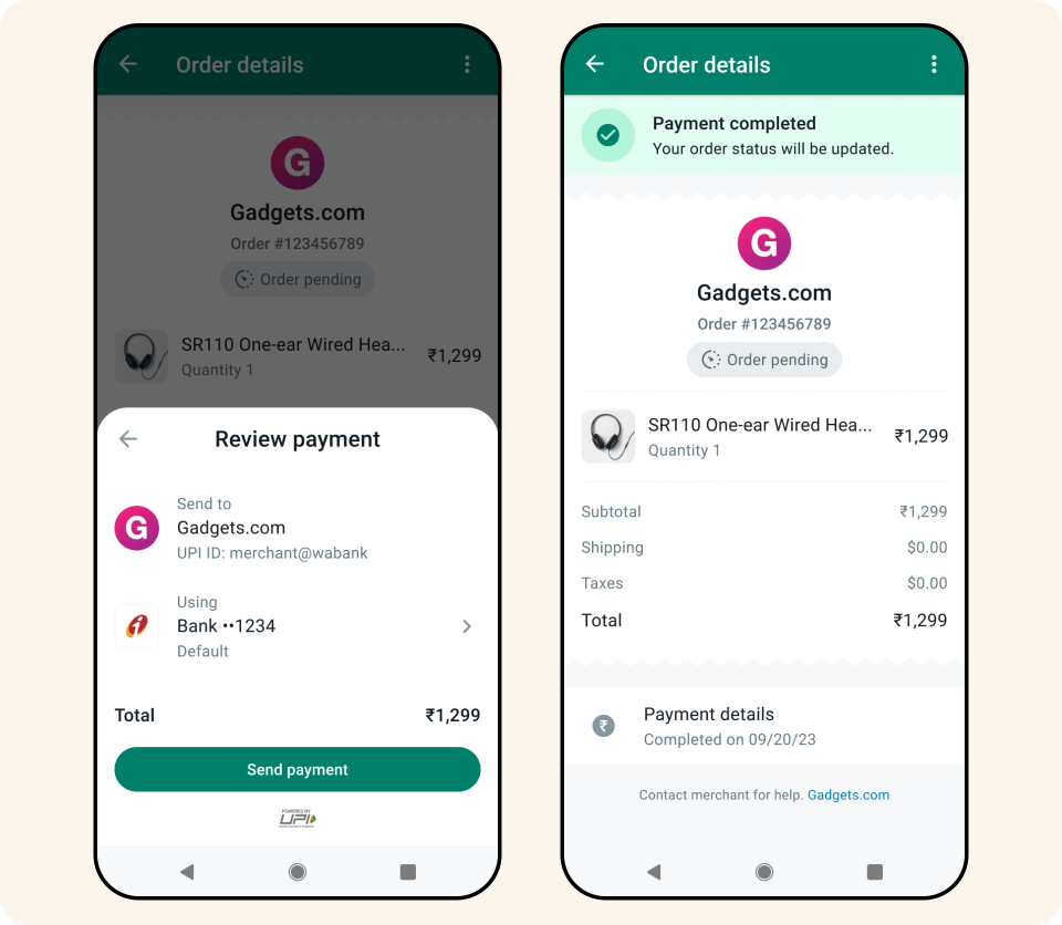 Egyszerűbbé tesszük a vásárlás teljesítését közvetlenül a chaten keresztül. Mától, az India lakosai hozzáadhatnak tételeket a kosarához, és kiválaszthatják fizetési módot az összes támogatott UPI alkalmazásból, bankkártyákból és hitelkártyákból, valamint más lehetőségekből. Nagyon izgatottak vagyunk, hogy együtt dolgozunk a Razorpay és a PayU partnerekkel annak érdekében, hogy a vásárlás olyan egyszerű legyen, mint az üzenet küldése.