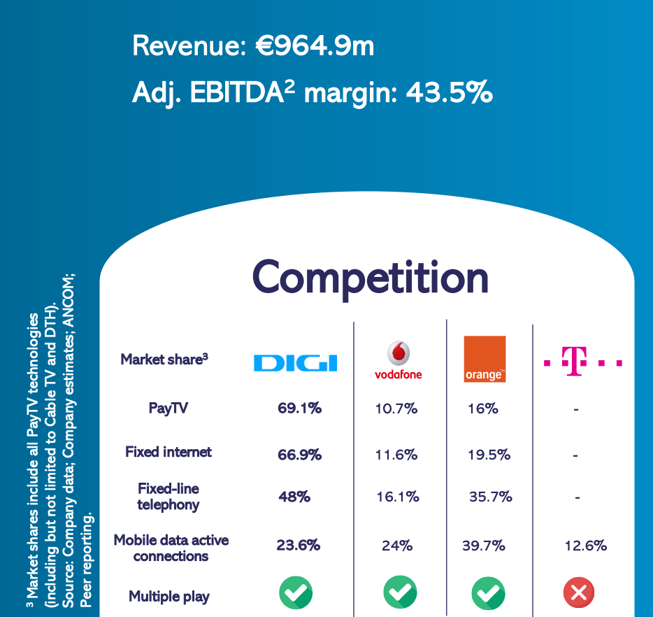 a teljes romániai lakosság 98,8%-a - #3 mobiltelefon-szolgáltató ~24%-kal