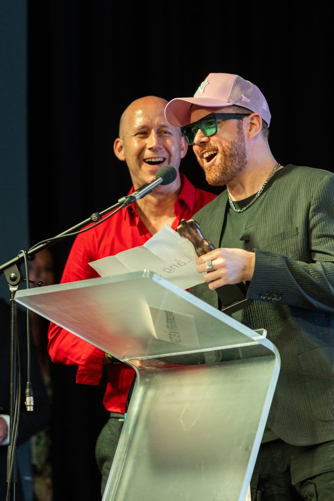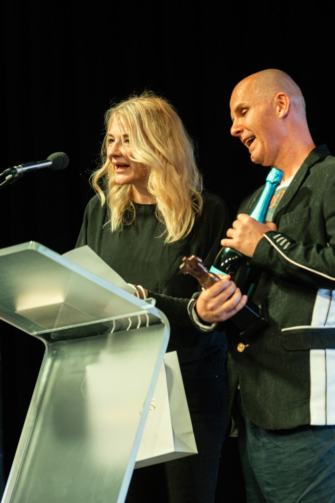 díjazottak, Törley pezsgővel. Hálásak vagyunk a díjátadóknak, Fluor Tomitól T. Dannyig,