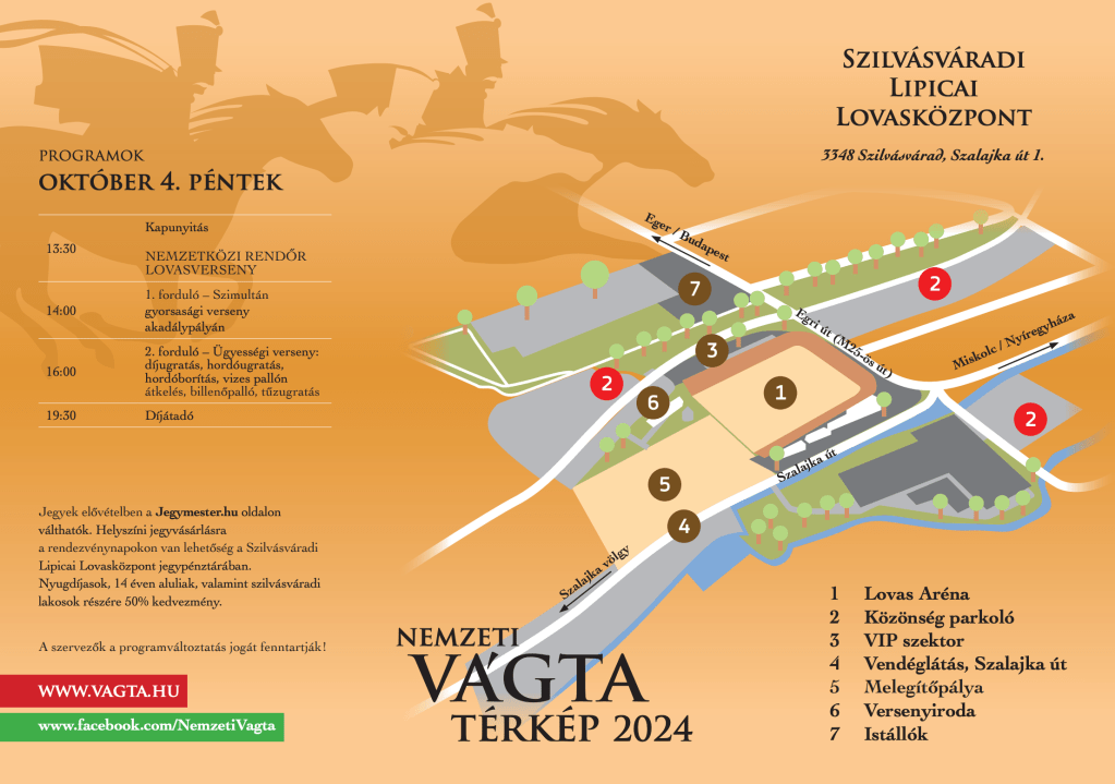 A 17. Nemzeti Vágtát 2024. október 4-5-6-án rendezik Szilvásváradon, a Szilvásváradi Lipicai Lovasközpontban, amelyre jegyeket a vagta.hu oldalon lehet vásárolni.