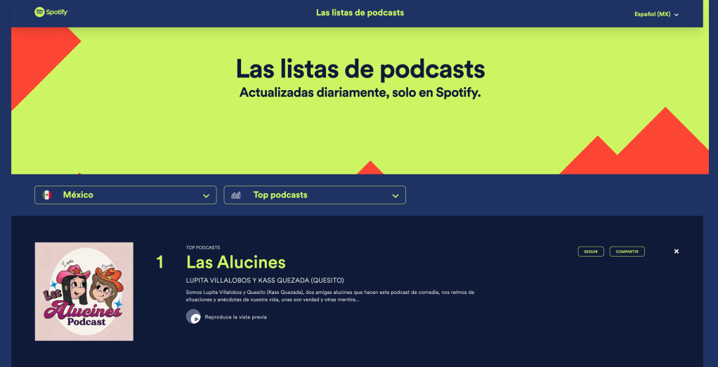 Megbízható módja annak, hogy megtudd, mi a trendi a hallgatók körében, ha megnézed, mely podcastok és műfajok a legnépszerűbbek jelenleg a Spotify-on. A rajongói tanulmány (2022) szerint világszerte a vígjáték a legnépszerűbb podcast műfaj, de a többi kedvenc műfaj régiónként változik. Latin-Amerikában például a legjobb műfaj a Fiction, Észak-Amerikában a Kids and Family, az ázsiai és csendes-óceáni térségben pedig a Religion and Spirituality a vezető műfaj.
