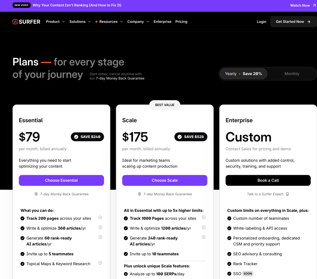 Ez egy all-in-one csoda: kulcsszókutatás, versenytárs-elemzés, tartalomtervezés – mindent egy helyen. Ha utálod a káoszt, és inkább egy tiszta felületen dolgoznál, ez lesz a te AI szerelmed.