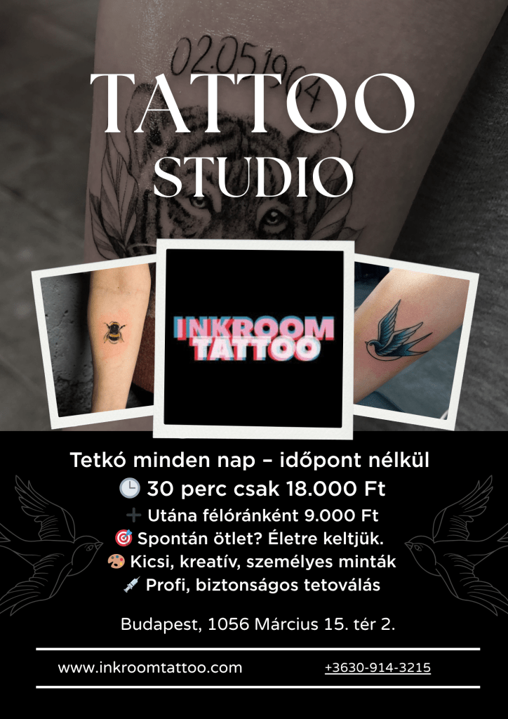 - Közepes (10×10 cm): 18 000–40 000 Ft/alkalom
