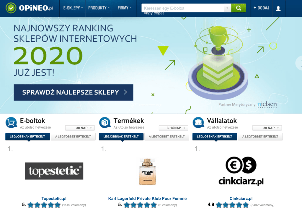 Nagy online áruházak Lengyelországban 2020-ban mintegy 11 000 új e-kereskedelmi webhelyet és online áruházat indítottak.