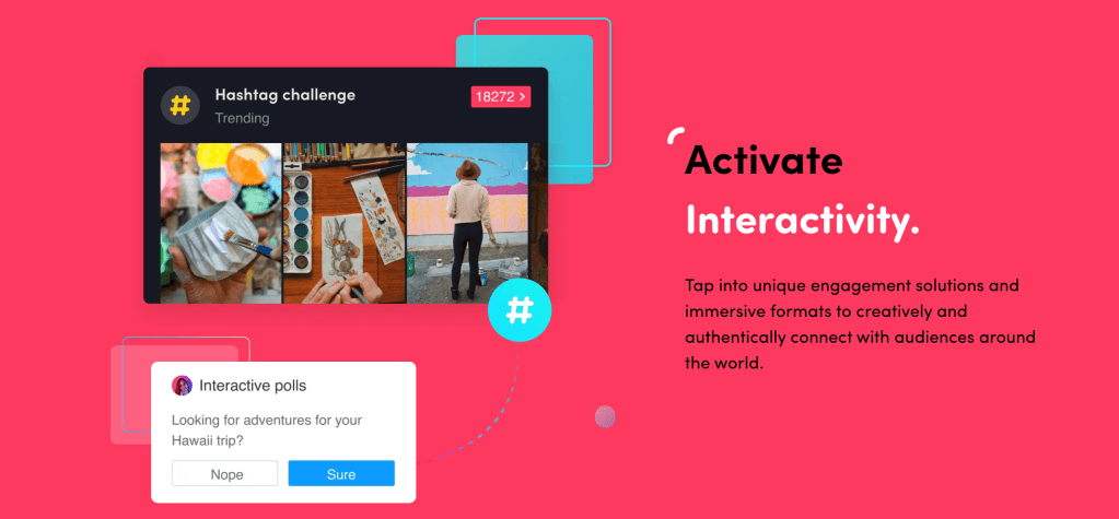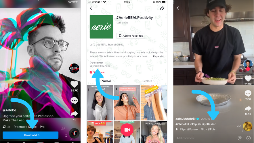 Ezek a hirdetések nem csak akkor jelennek meg, amikor a felhasználók megnyitják a TikTok-ot, de a For You oldalon is megjelenhetnek állóképként, GIF-ként vagy videókként – ideértve a kattintható linket, amely a felhasználókat egy céloldalra vagy a TikTok-on belüli Hashtag-kihívásra irányítja.