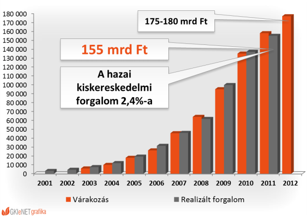A termékek internetes kiskereskedelmi forgalmának nemcsak az értéke, hanem a teljes kiskereskedelmi forgalomra vetített részesedése is stabilan növekszik: míg a 2010-es 133 milliárd a teljes piac 1,8 százalékát jelentette, addig ez 2011-ben már 2,4 százalék volt, míg idén várhatóan 3 százalékra nő. Az interneten a műszaki cikkek népszerűsége továbbra is töretlen, hosszú évek óta a leggyakrabban vásárolt termékek közé tartozik az élelmiszerek, a könyvek, a szállásfoglalások és a belépőjegyek mellett. Az átlagos vásárlási érték a vásárlások mennyiségének növekedésével párhuzamosan ugyanakkor folyamatosan csökken, a GKI adatai szerint jelenleg 7000 forint körül van.